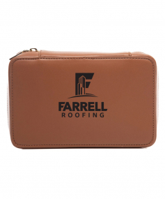 Keep your tech essentials neatly stored with our compact 8.5" x 5.5" recycled leather tech case, available in caramel and sage. Designed to hold cables, batteries, USB drives, and other computer necessities, this case ensures that everything stays in its place, whether you’re on the go or organizing your desk.