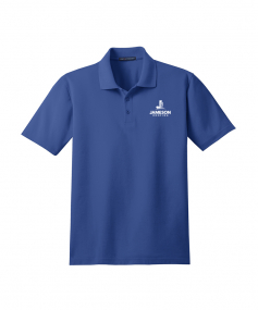 5.6-ounce, 60/40 cotton/poly. Includes double-needle stitching throughout. Flat knit collar and 3-button placket with dyed-to-match buttons. Features open hem sleeves and side vents.